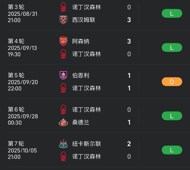 近5轮4负!森林近4败均被零封,澳波执教7场不胜帅位动摇