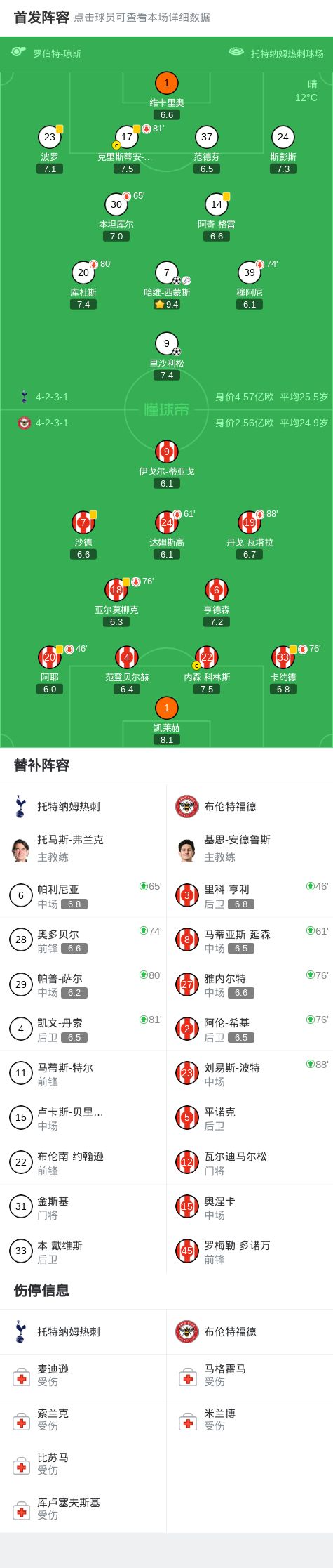 第25分钟,西蒙斯送助攻,里沙利松轻松破门,热刺1-0布伦特福德